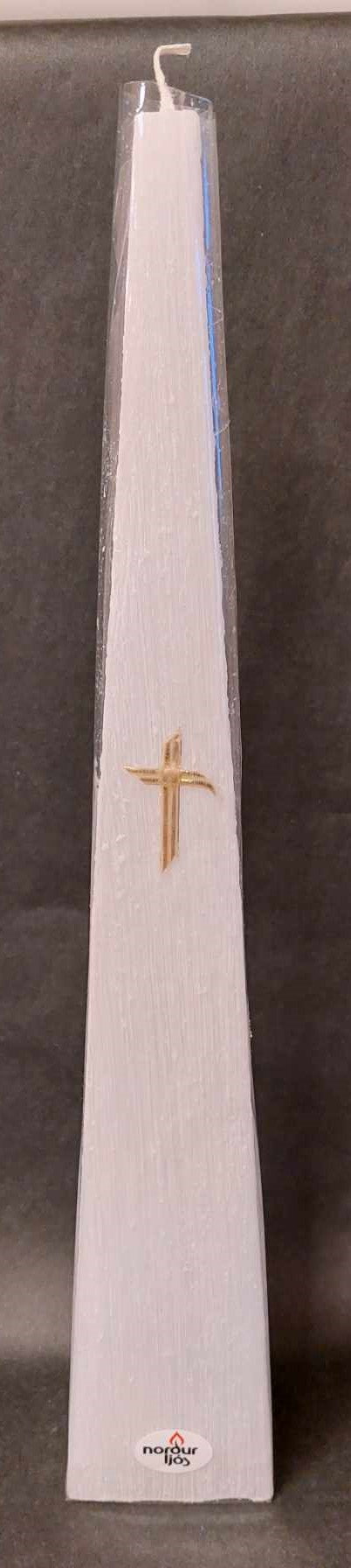 Píramídakerti, hvítt með gylltum krossi