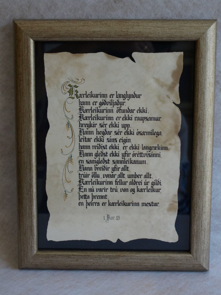 Kærleikurinn. Skrautrituð í ramma.