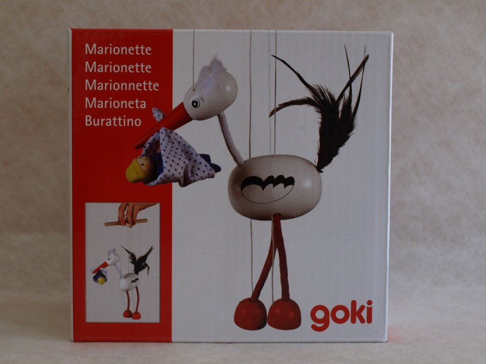 Storkur kemur með nýfætt barn - strengjabrúða.